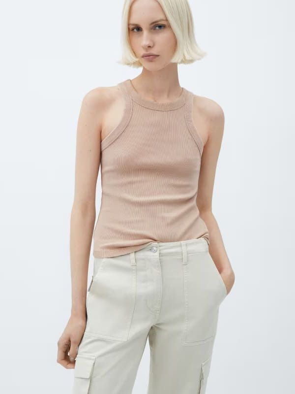 پارچه بافتنی ضخیم. طرح کوتاه. طراحی مستقیم. گردن گرد. بدون آستین. تسمه. بسته نشده. روکش کابل کشی. هماهنگی
